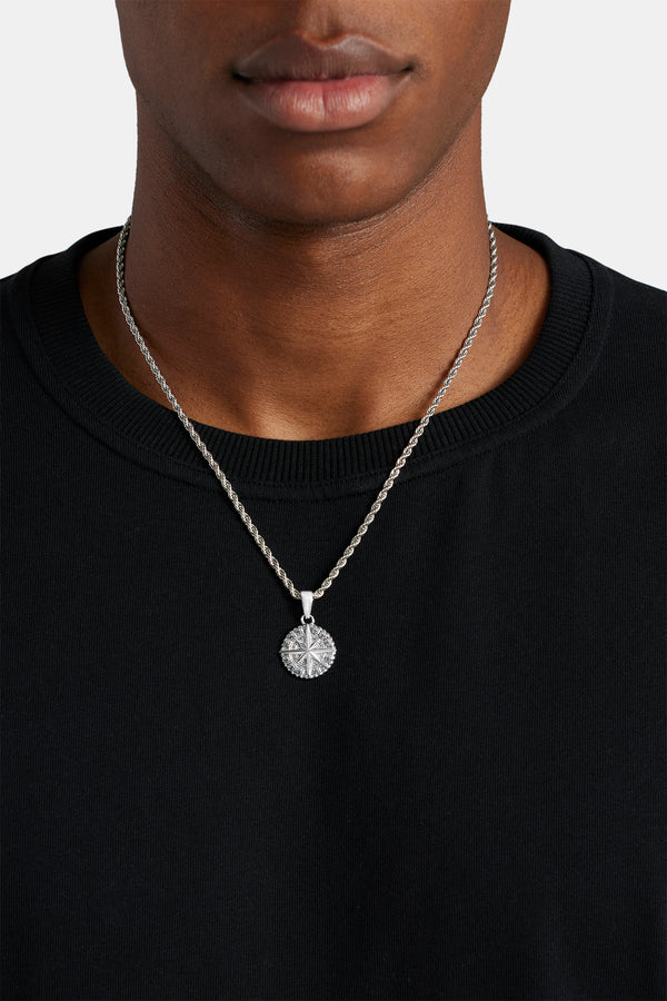 Iced Cross Disk Necklace - 13mm - White