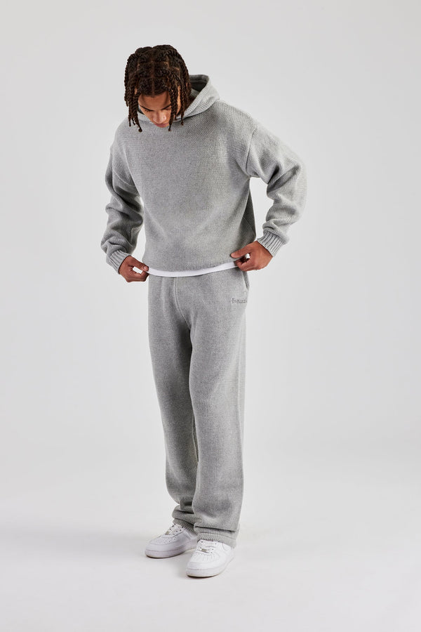 Mens C Knitted Zip Through Hoodie & Jogger - Grey
