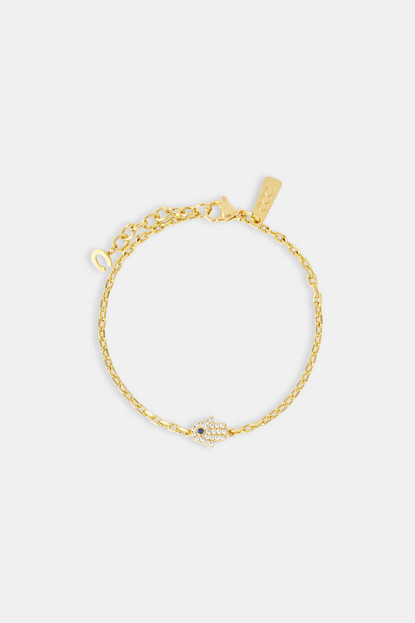 Iced Oval Stone Rolo Bracelet - 6mm - Gold
