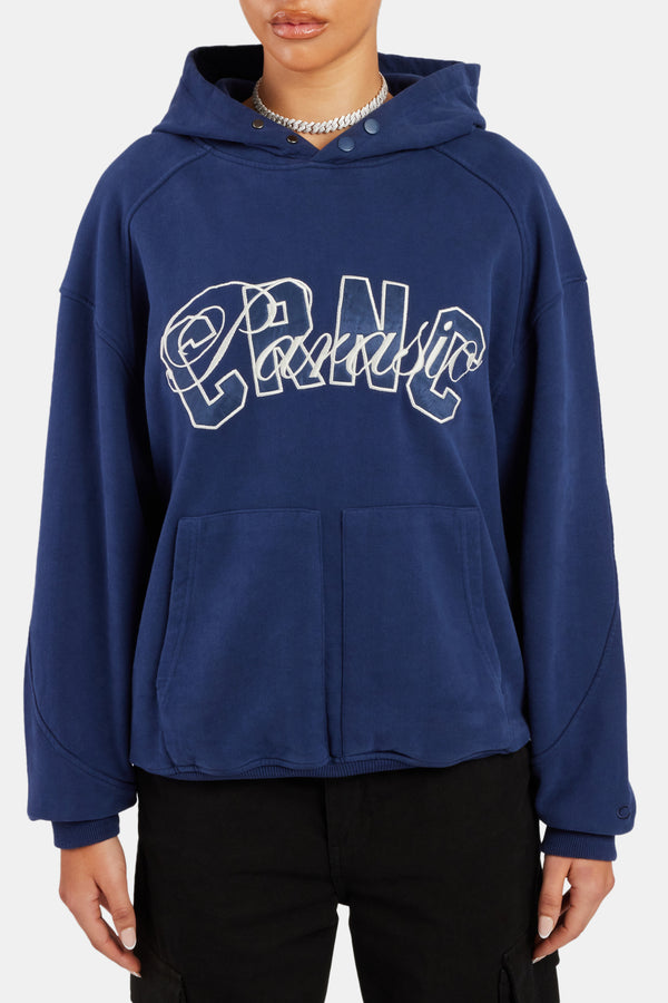 Washed Applique Logo Boxy Zip Through Hoodie - Navy