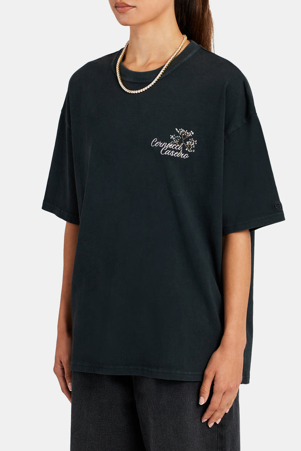 Faux Layer Embroidered T-Shirt - Ash Grey