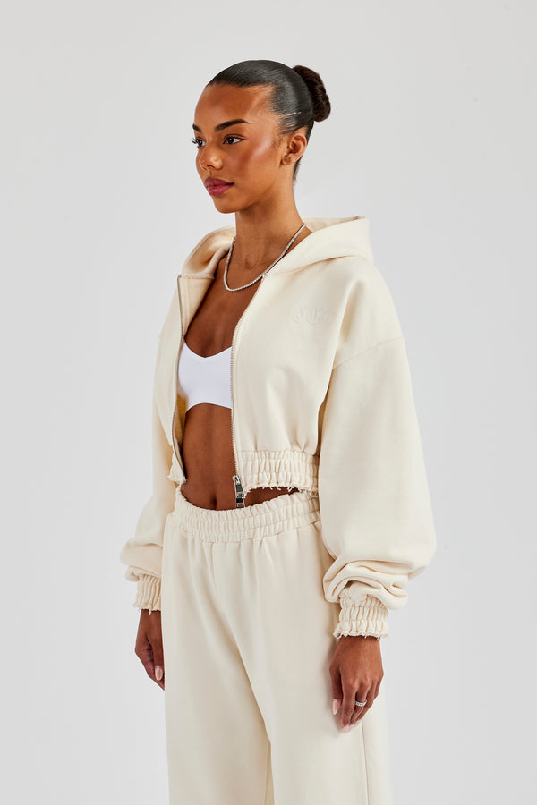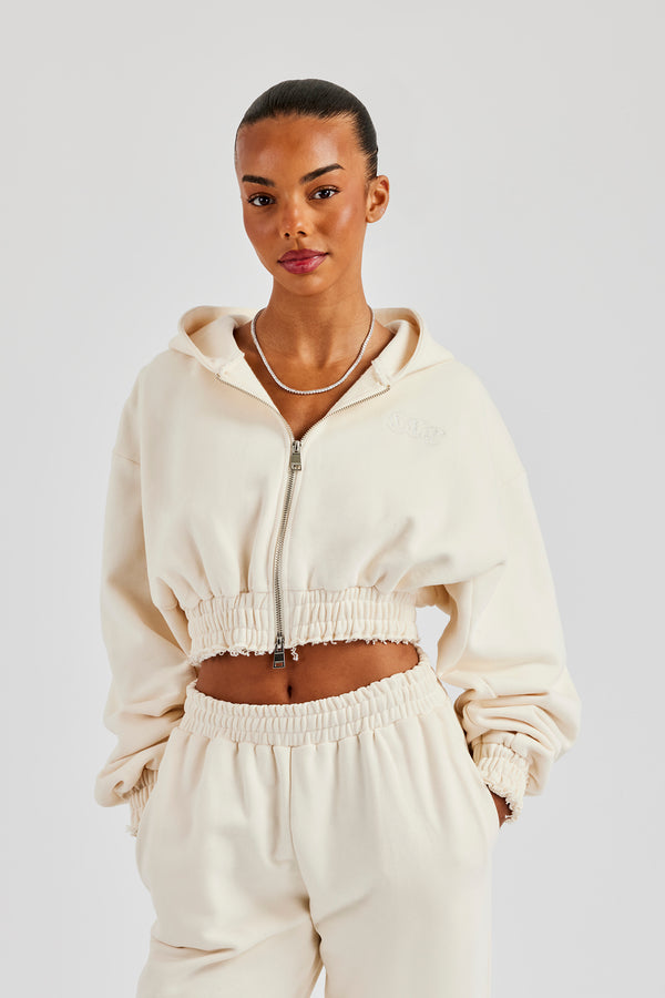 Washed Applique Logo Boxy Zip Through Hoodie & Wide Leg Jogger - Grey