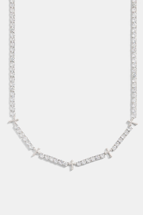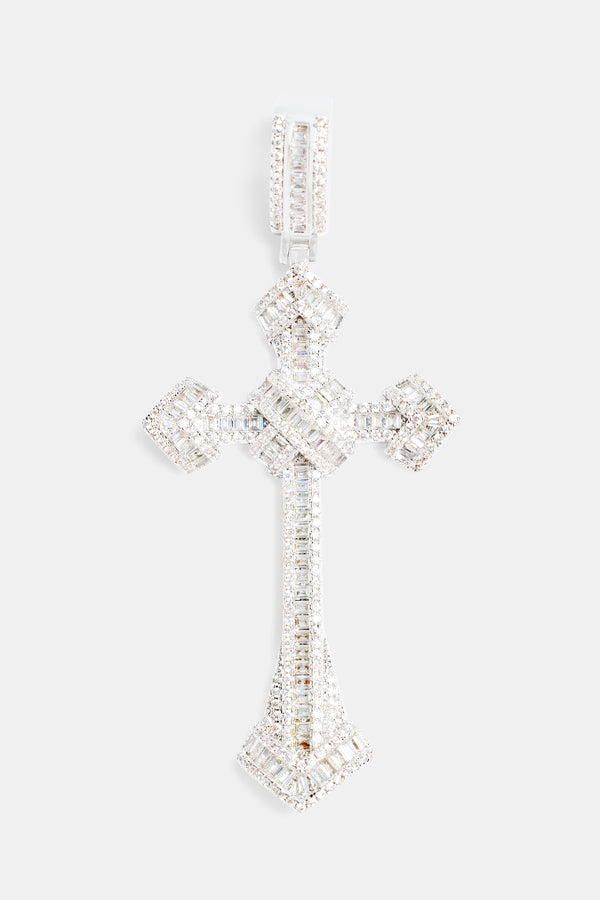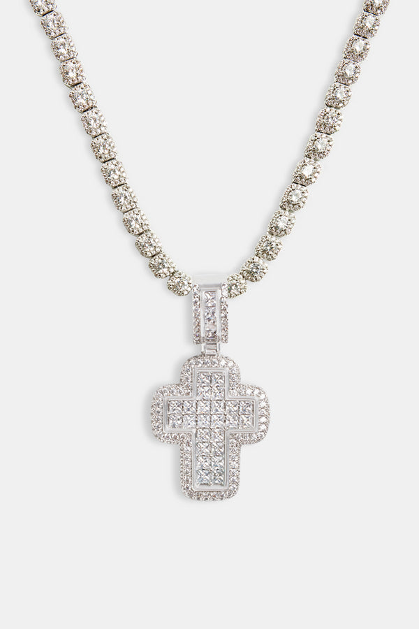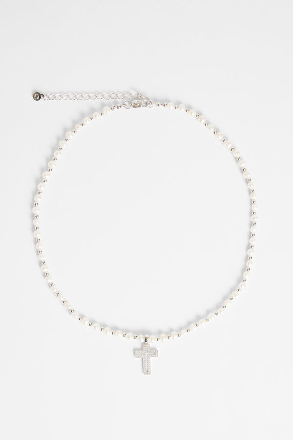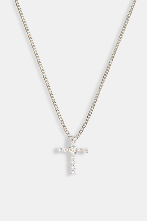 Polished Cross & Clear Gemstone Necklace - 10mm