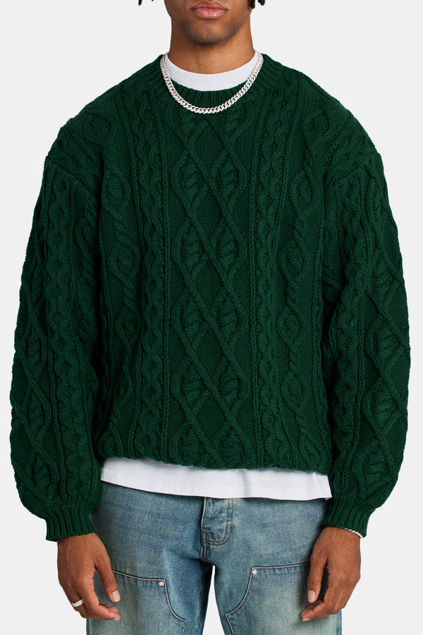 Cable Knit Varsity Sweater  - Forest GreenCable Knit Varsity Sweater  - Forest Green