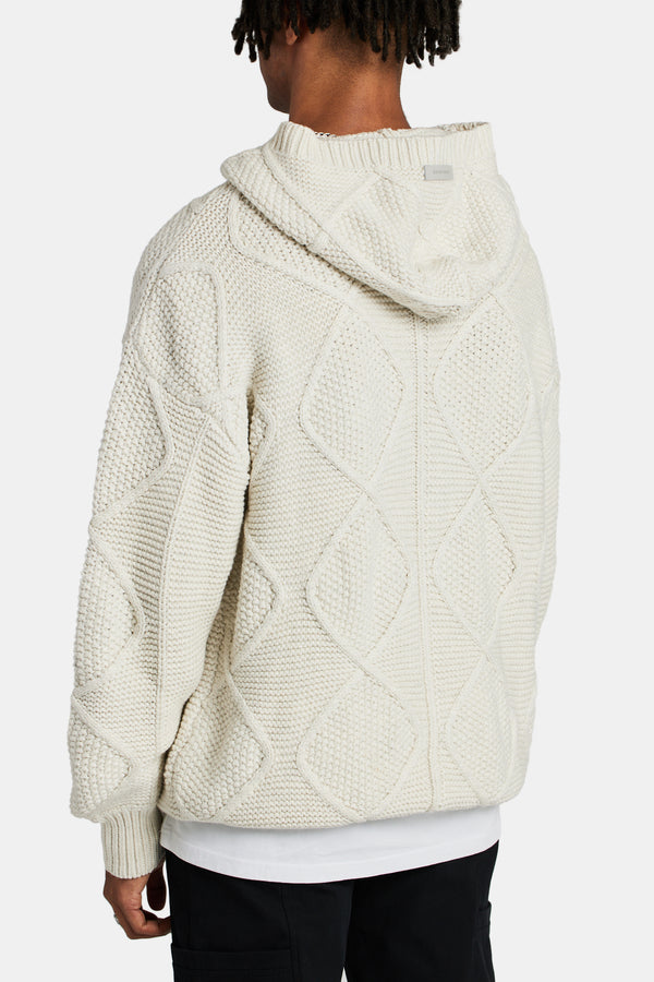 CCC Spliced Cable Knit Hoodie - Off WhiteCCC Spliced Cable Knit Hoodie - Off White