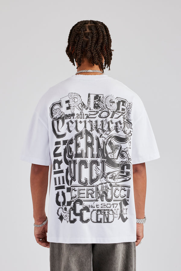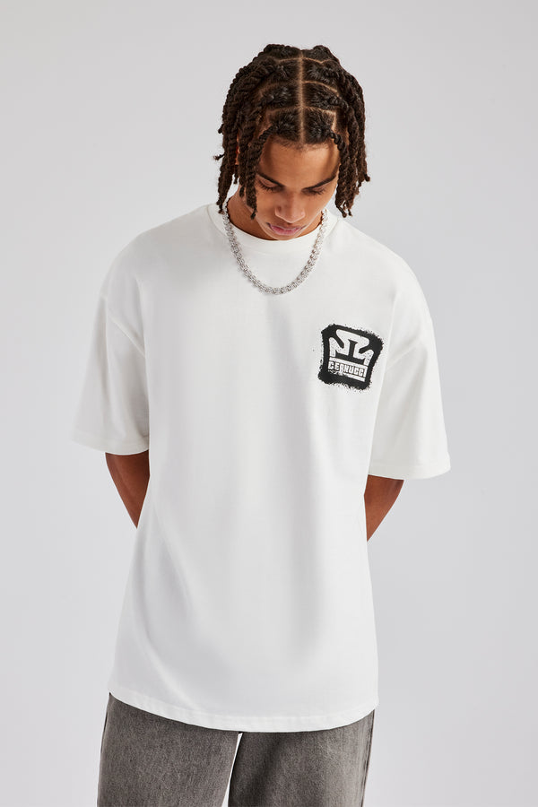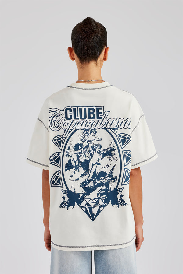 222 Cherub Contrast Stitch Oversized T-Shirt - Off White