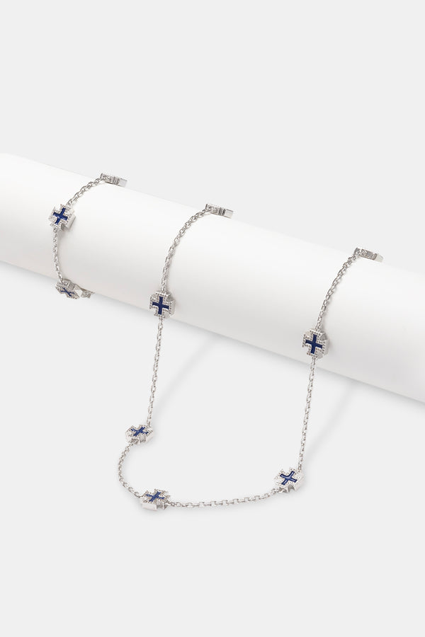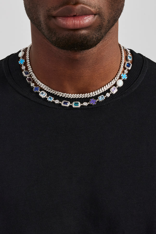 Allway Coloured Bezel Tennis Necklace + Bracelet & Iced Blue Clustered Stud Earrings Bundle