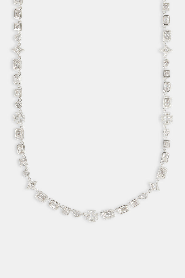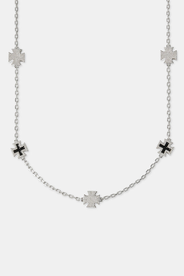 Polished Cross & Compass Layered Necklace - 15mm - White