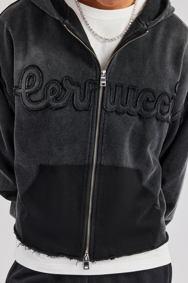 Cernucci Script Boxy Zip Through Hoodie - Black