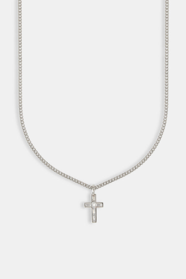 Iced Baguette Stone Cross Necklace - 25mmIced Baguette Stone Cross Necklace - 25mm