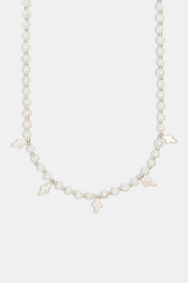 Polished Cross & Clear Gemstone Necklace - 10mm