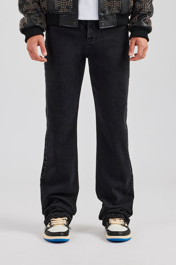 Distressed Paint Splatter Relaxed Jean - Washed Black