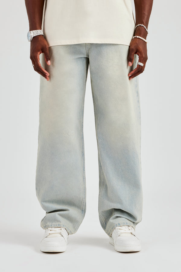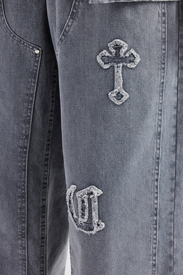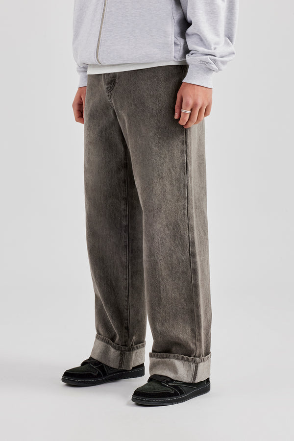Super Baggy Carpenter Detail Jeans - Washed Grey