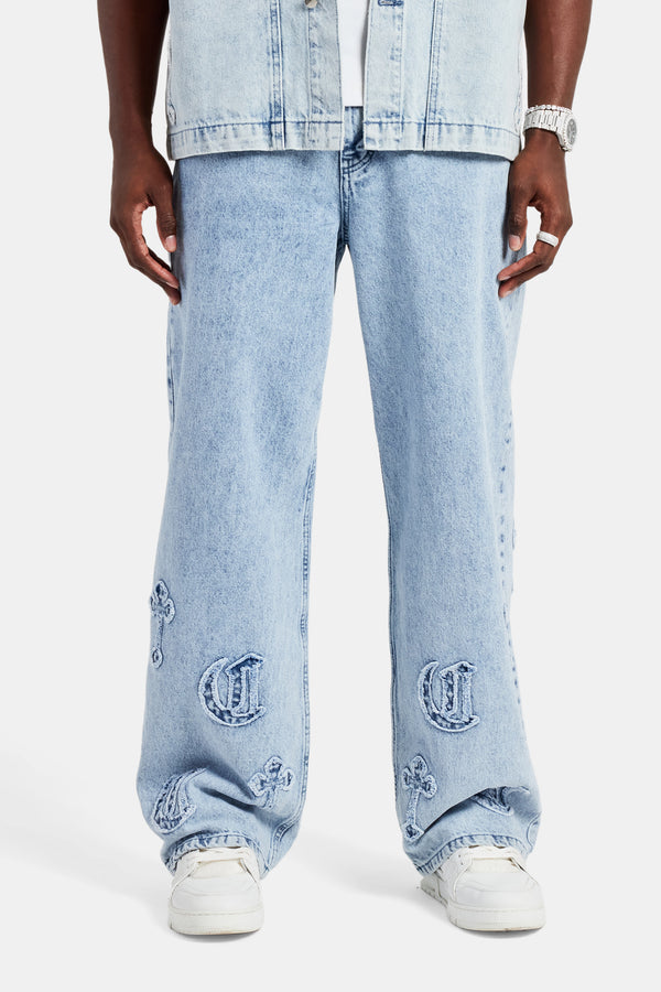 Applique Motif Baggy Fit Jean - Washed Grey