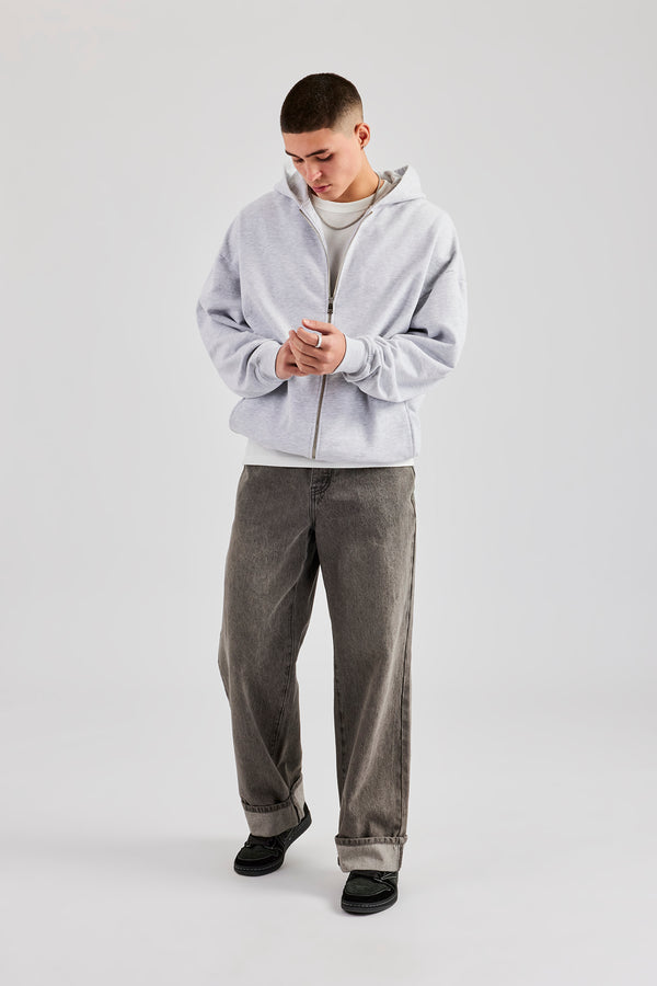 Denim Boxy Fit Zip Hoodie - Ice Blue