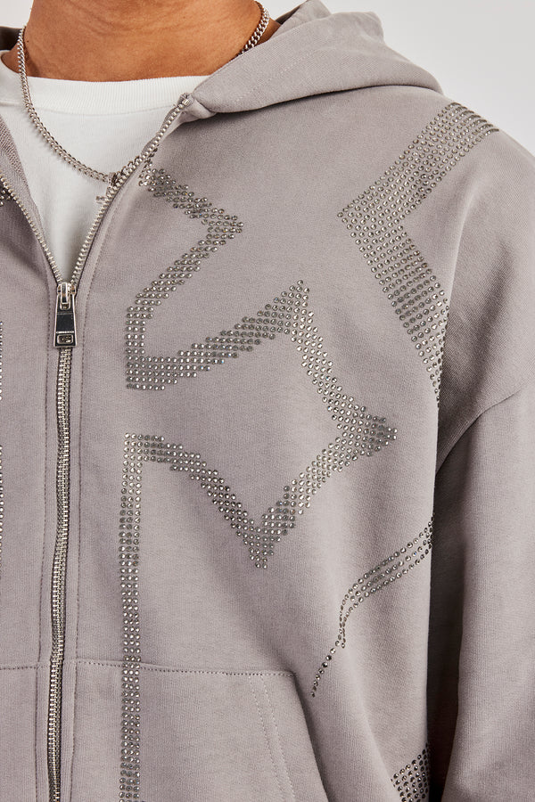 Diamonds In Paradise Printed Boxy Zip Hoodie - Charcoal
