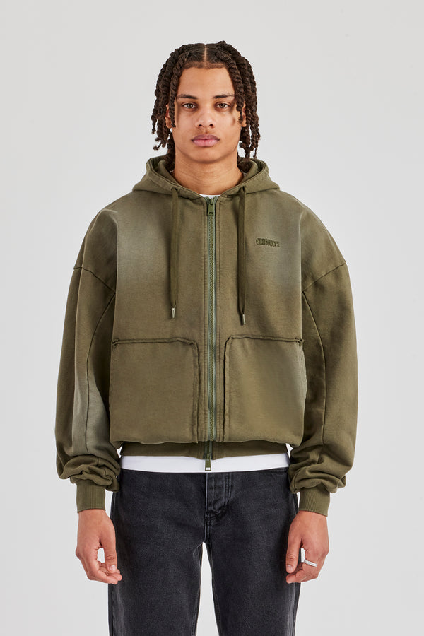 Washed Zip Through Hoodie - Brown