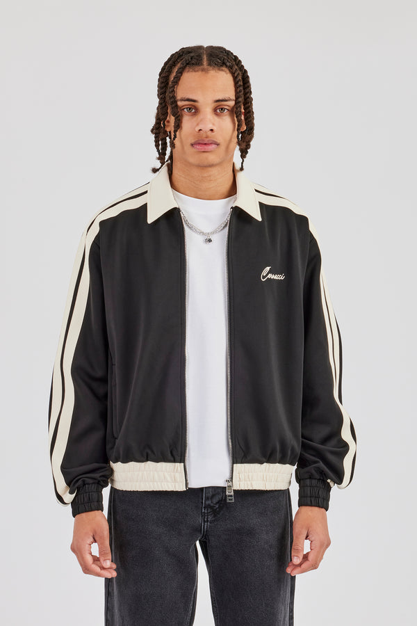 Mens Relaxed Poly Smooth Taping Track Pant - Black