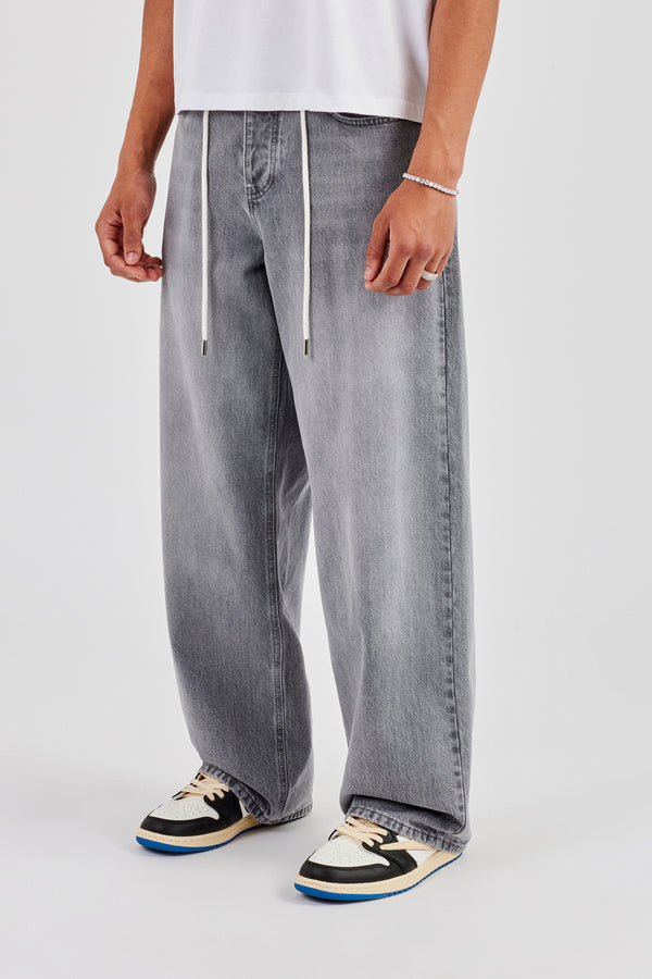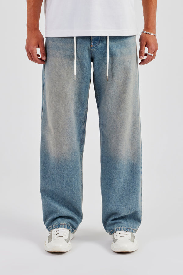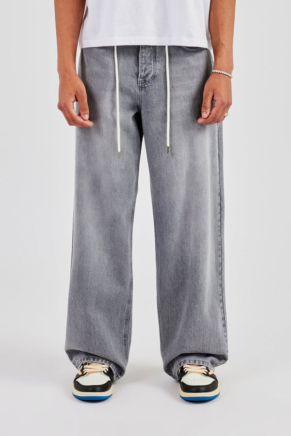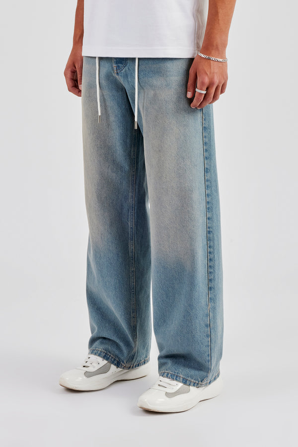 Washed Applique Boxy Zip Through Hoodie - Acid Wash