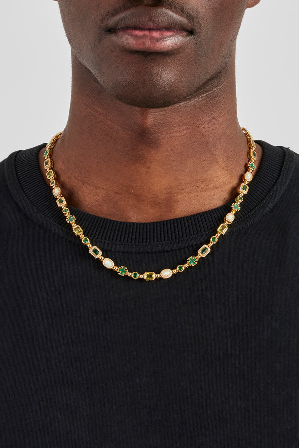 Iced Stone & Cross Link Chain - 8mm