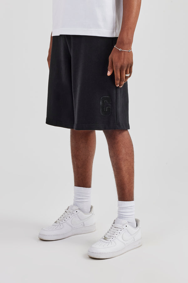 Washed Applique Boxy Zip Through Hoodie - Acid Wash
