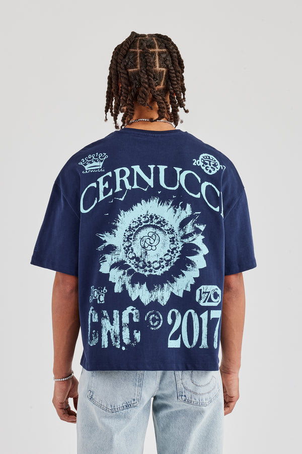 Established 2017 Boxy Long Sleeved T-Shirt - Navy Blue