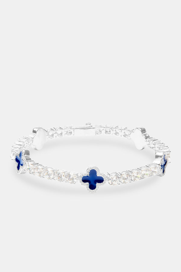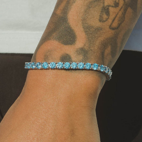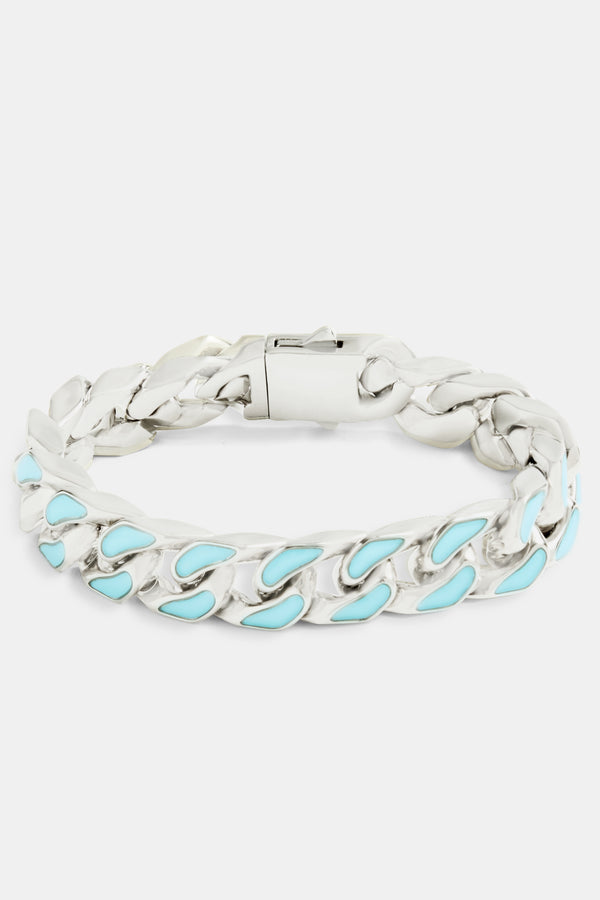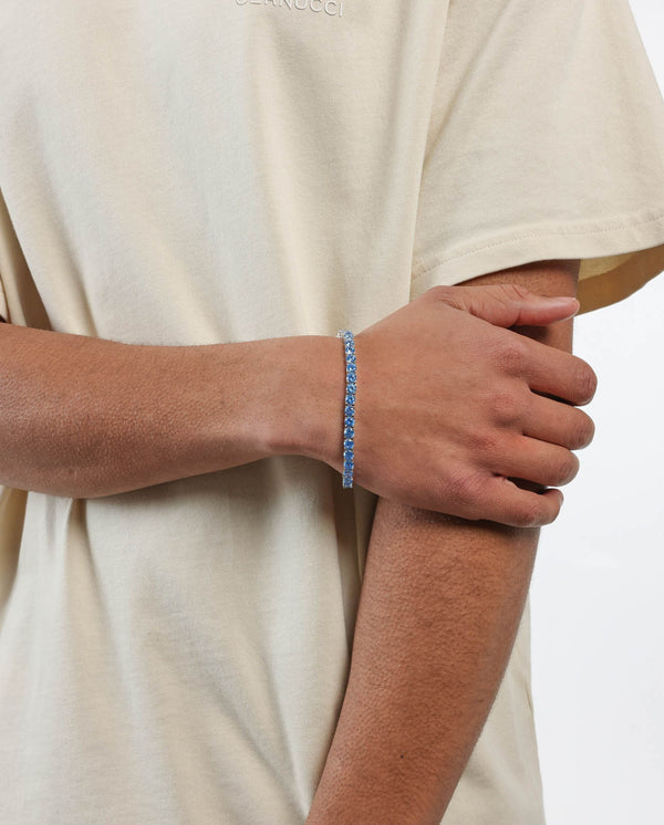 Iced Blue Oval Gemstone Rolo Bracelet - 10mm