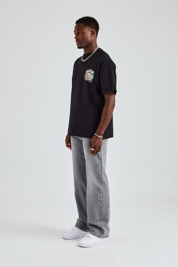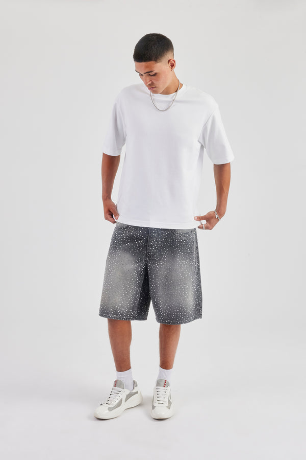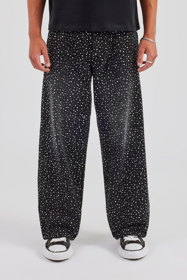 Distressed Paint Splatter Relaxed Jean - Washed Black