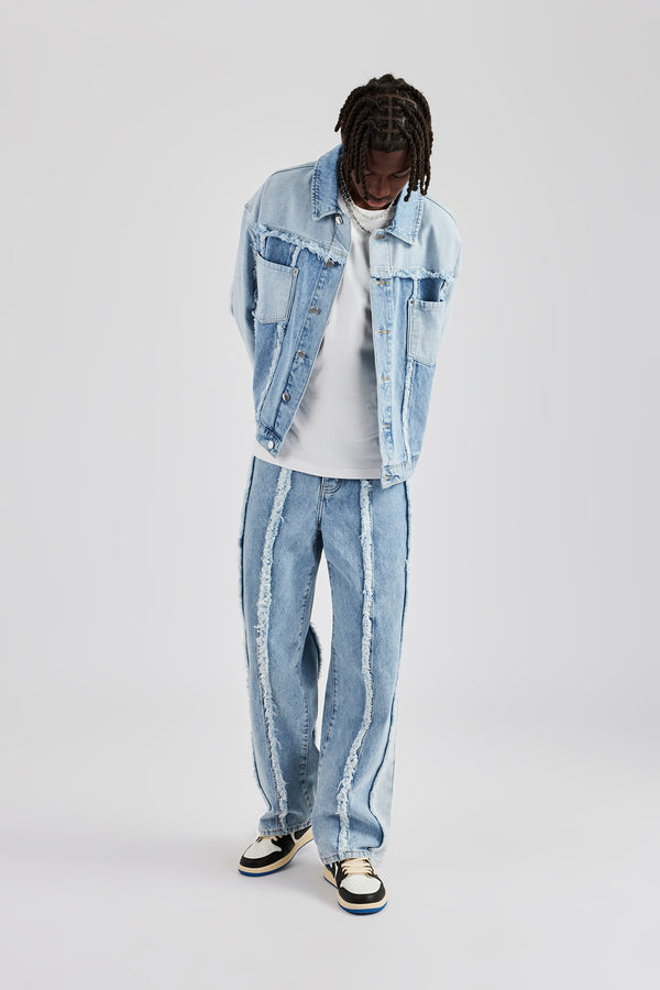 Denim Boxy Fit Zip Hoodie - Ice Blue
