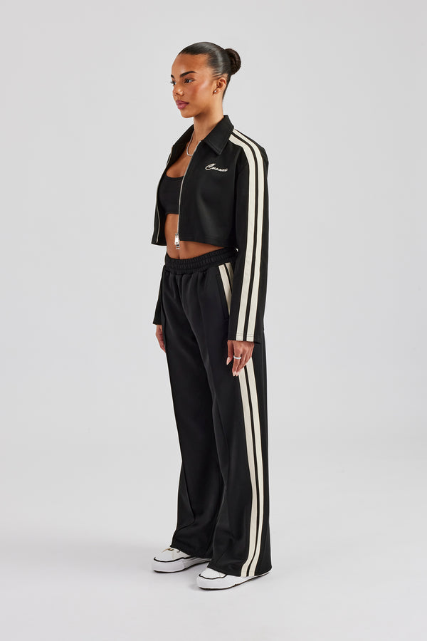 Heavyweight Jersey Collared Bomber Jacket & Wide Leg Jogger - Black
