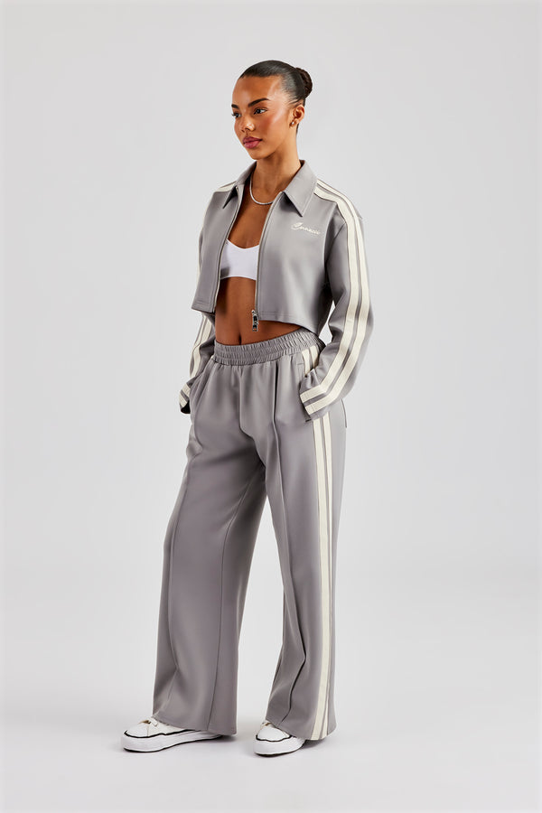 Heavyweight Jersey Collared Bomber Jacket & Wide Leg Jogger - Grey Marl