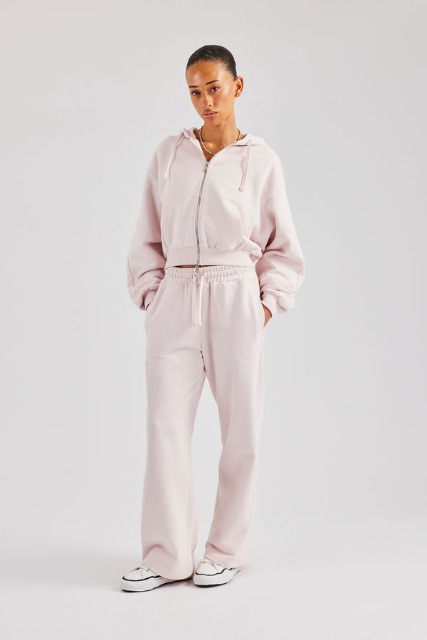 Washed Applique Logo Boxy Zip Through Hoodie & Wide Leg Jogger - Navy