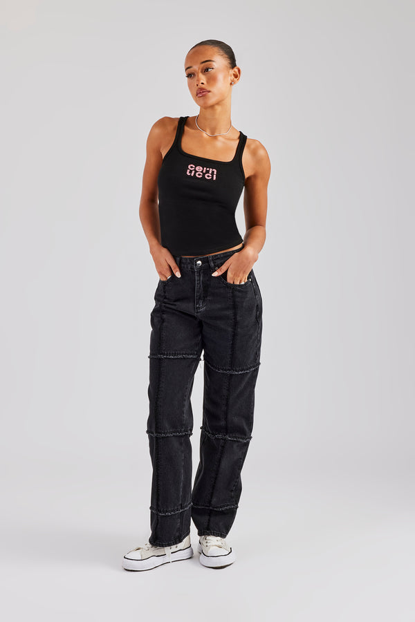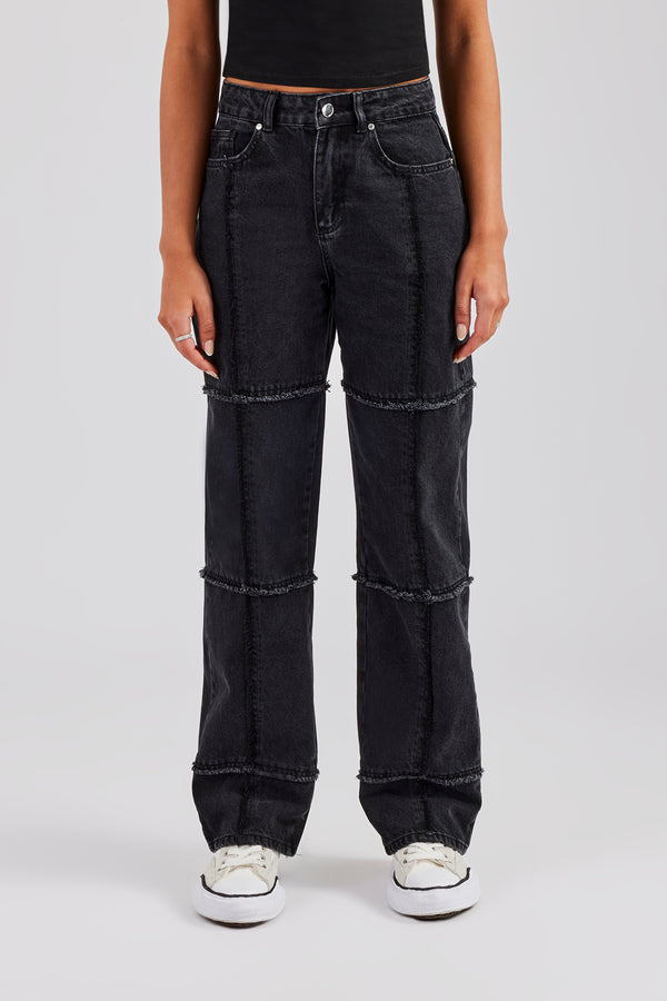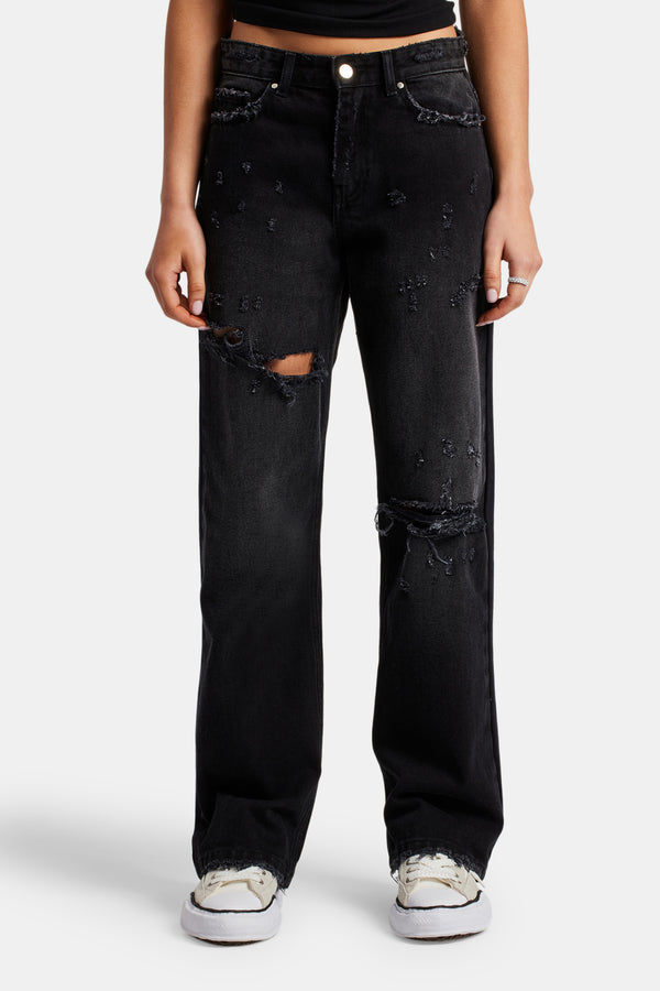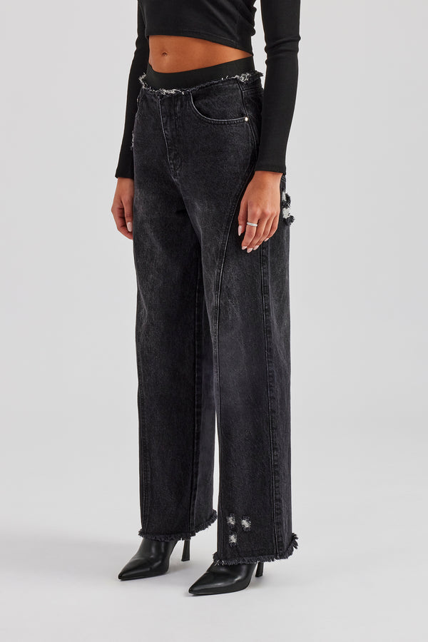 Baggy Low Waistbandless Detail Jean - Washed Black