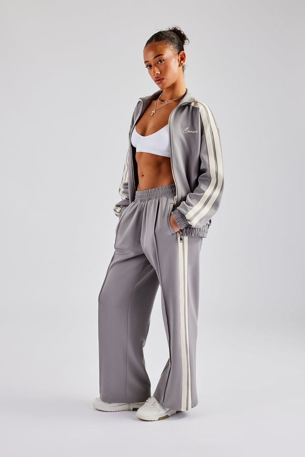Funnel Neck Taupe Taping Zip Through Track Jacket & Wide Leg Pant - Off White