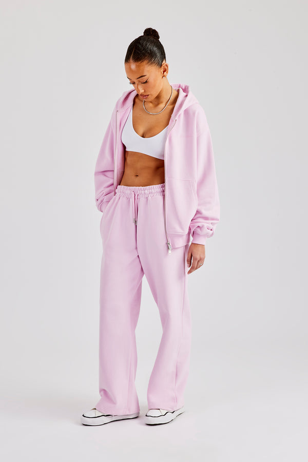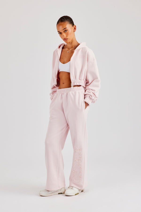 Washed Applique Logo Boxy Zip Through Hoodie & Wide Leg Jogger - Navy