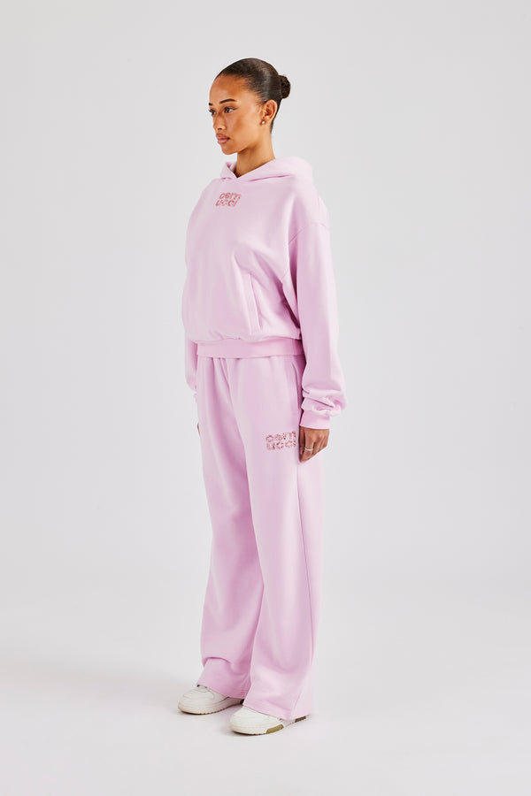 Cropped Layered Applique Zip Hoodie & Wide Leg Jogger - Burgundy