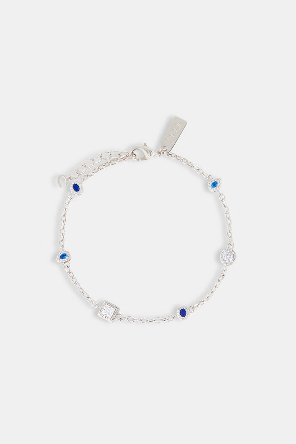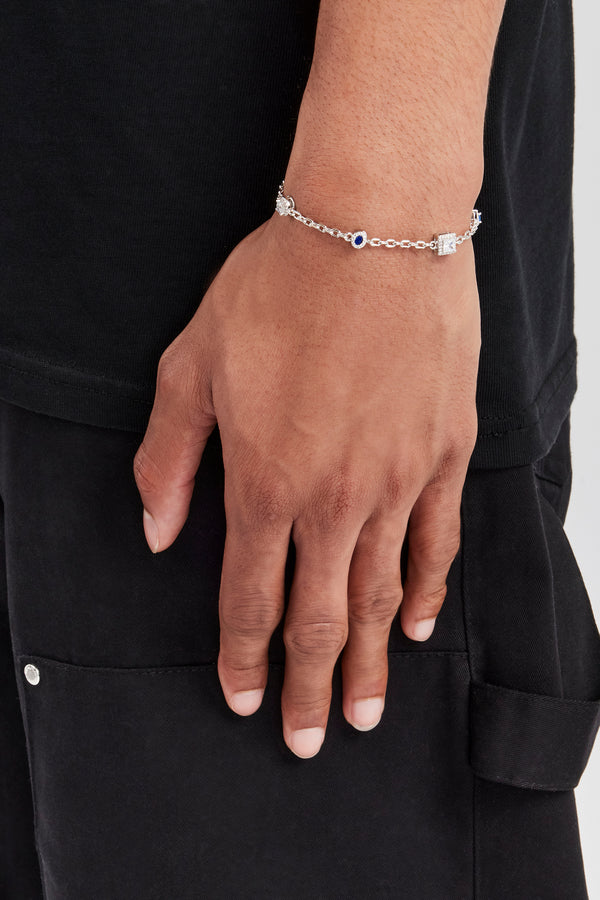 Iced Blue Oval Gemstone Rolo Bracelet - 10mm