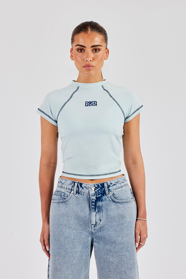 Diamond Cut Contrast Stitch T-Shirt - Forest Green