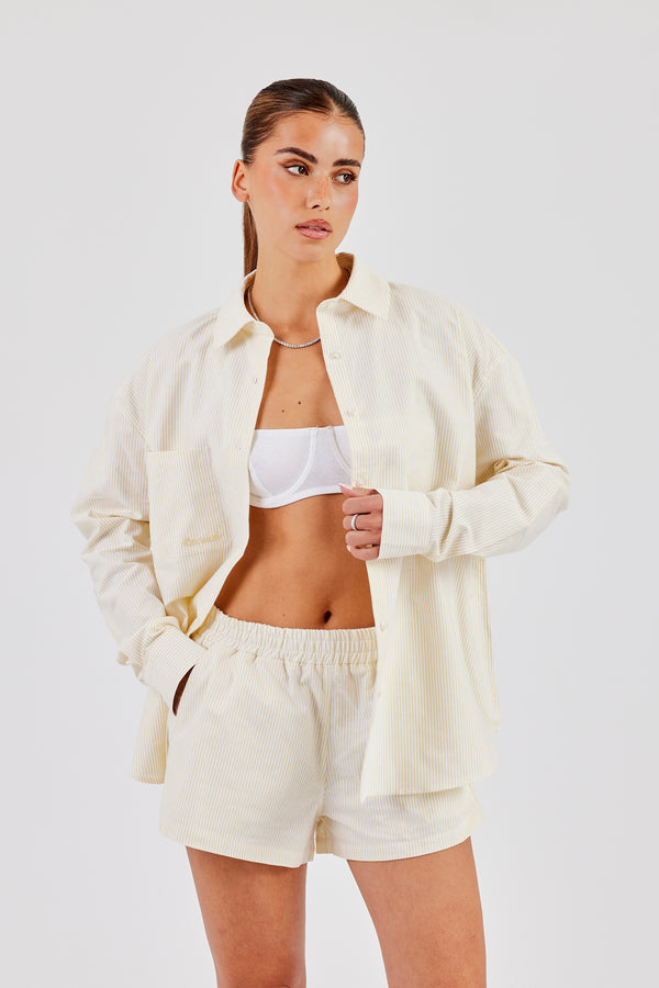 Oversized Stripe Tie Sleeve Shirt - Pink