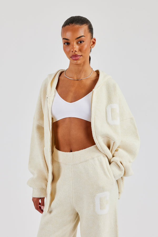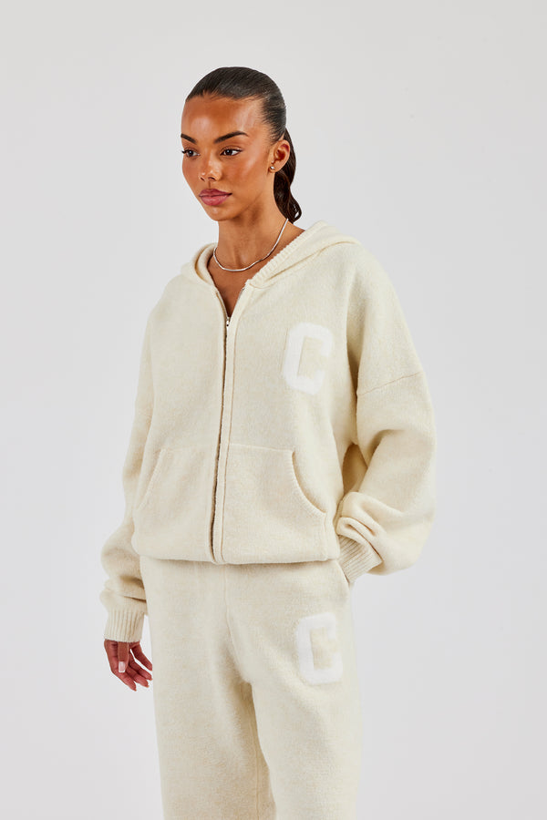 Rib Zip Through Funnel Neck Sweat - Ash Grey