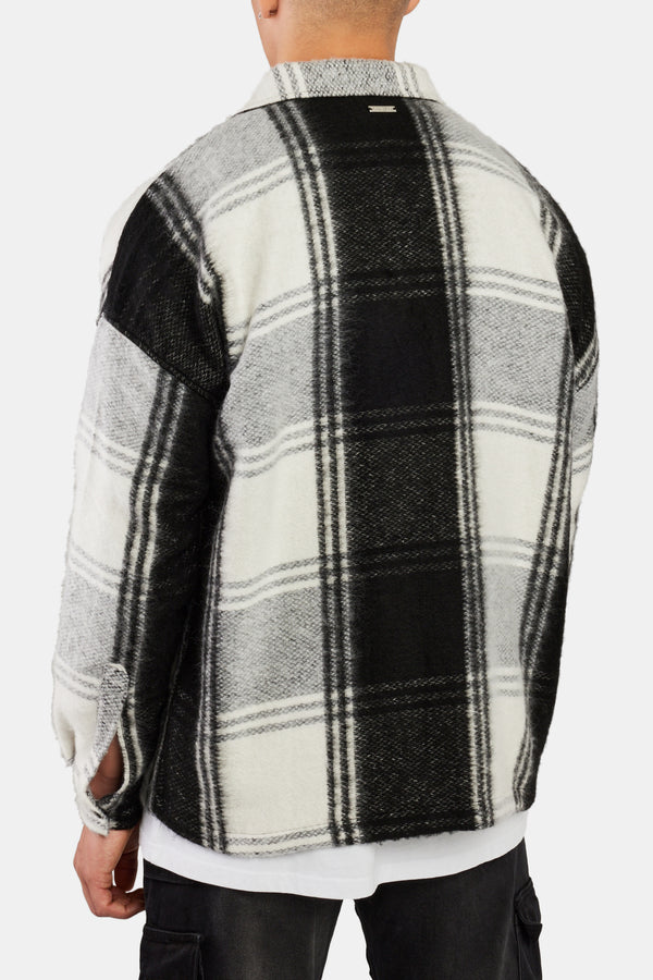 Open Knit Funnel Neck Jacket With Tape Detailing - Dark Brown