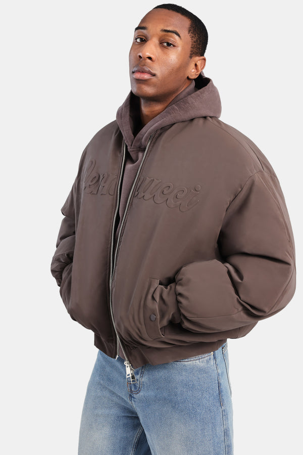 Knitted Cernucci Back Detail Boxy Zip Hoodie - Brown
