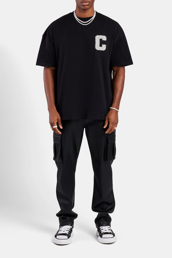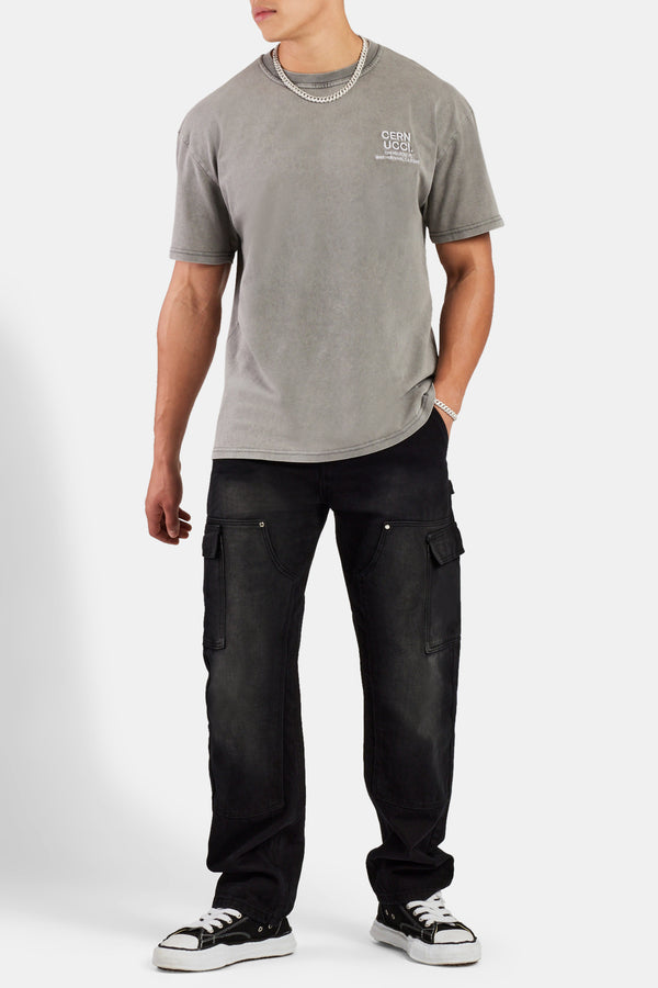 Boxy Rhinestone Logo T-Shirt - Charcoal