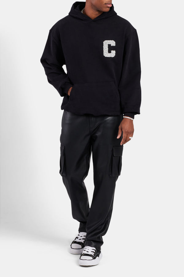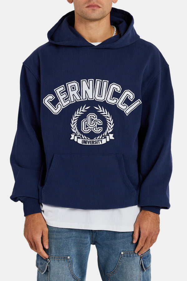 Washed Applique Boxy Zip Through Hoodie - Acid Wash