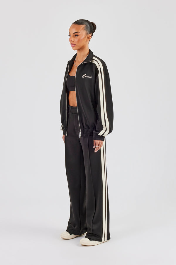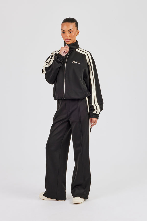 Funnel Neck Taupe Taping Zip Through Track Jacket & Wide Leg Pant - Off White
