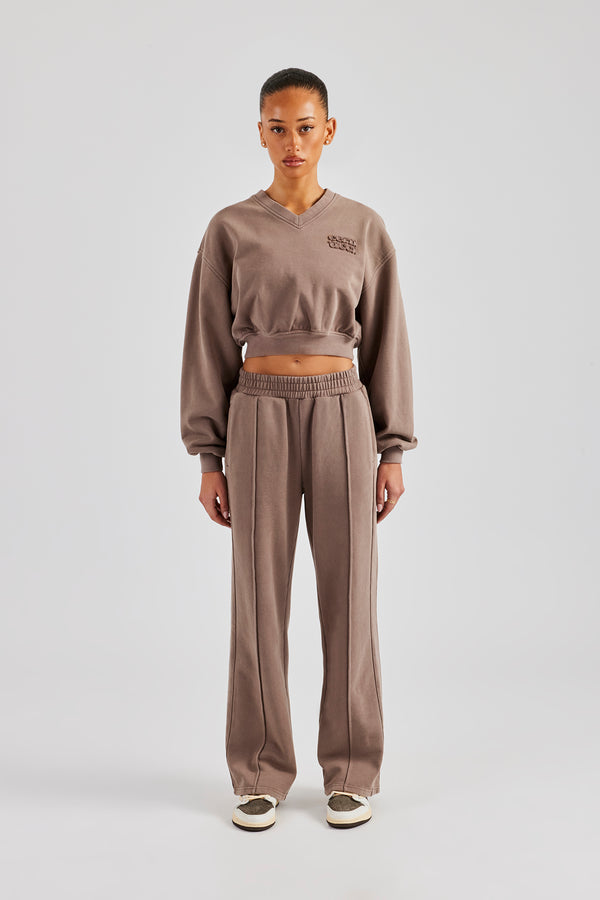 Poly Collared Bomber Jacket & Wide Leg Trouser - Chocolate