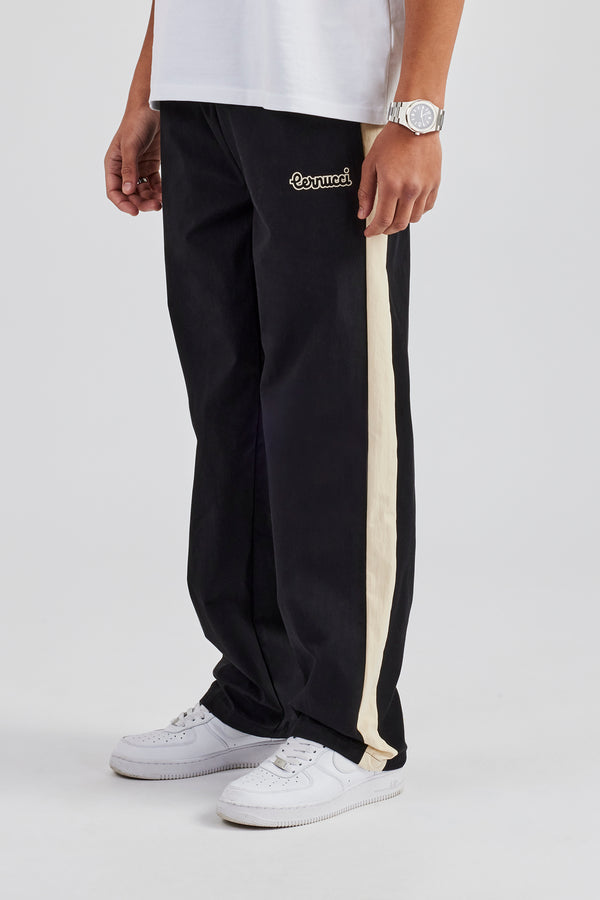 Mens Relaxed Poly Smooth Taping Track Pant - Black