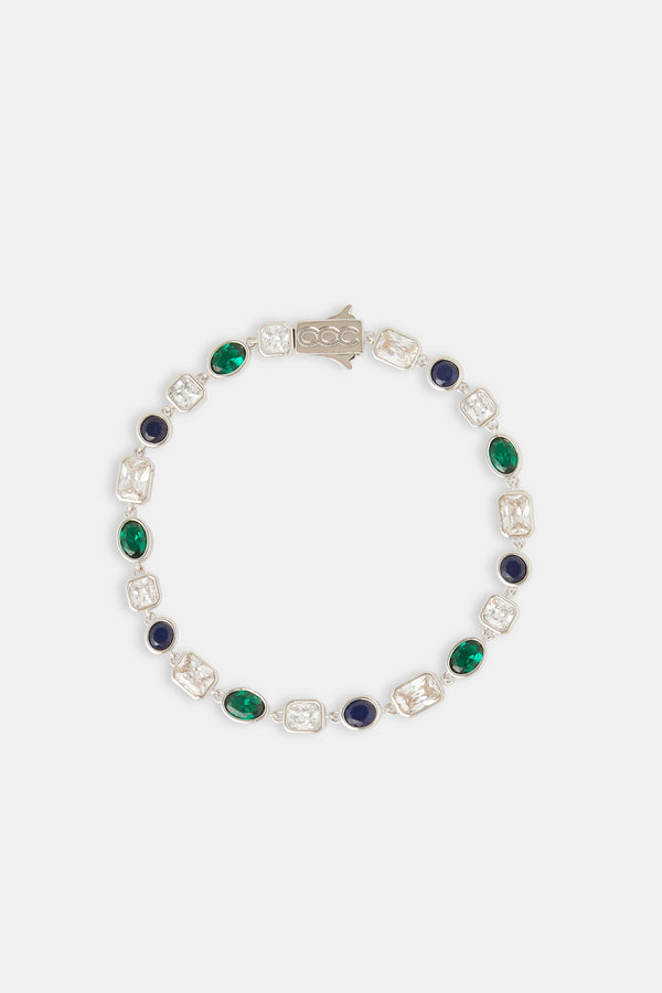 Iced Cross & Motif Multi Gemstone Bracelet - 6mm