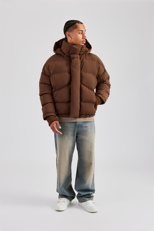 Vintage Pu Borg Lined Hooded Jacket - Brown