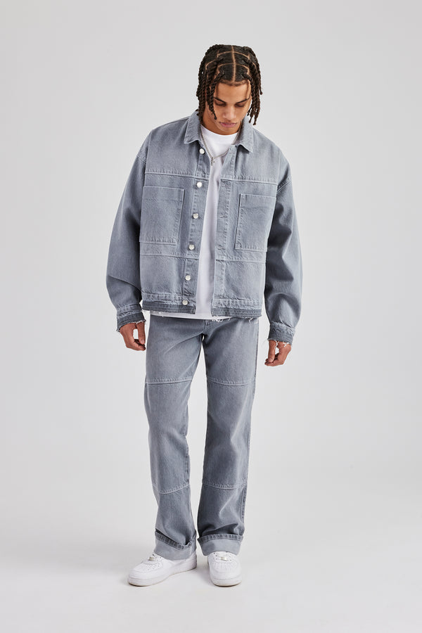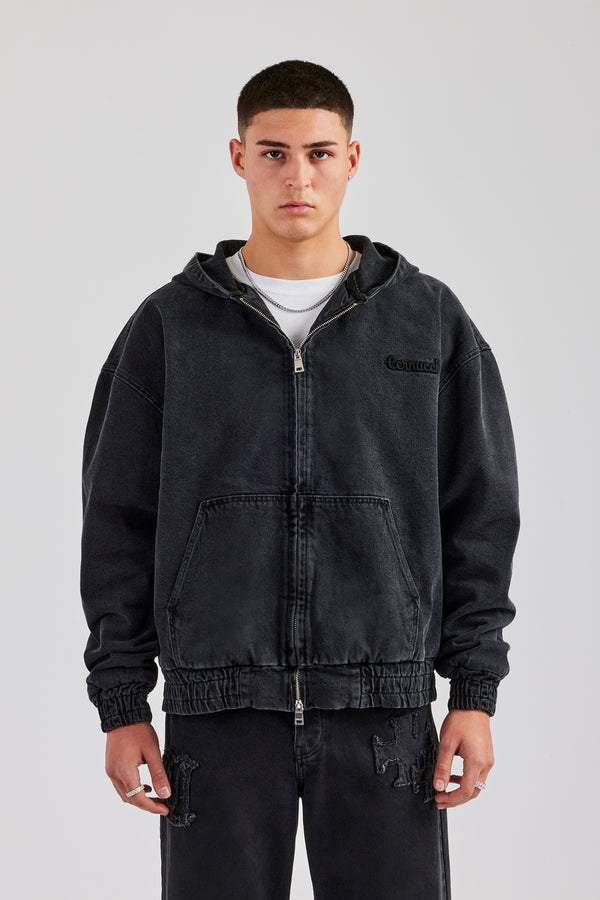 Denim Boxy Fit Zip Hoodie - Ice Blue